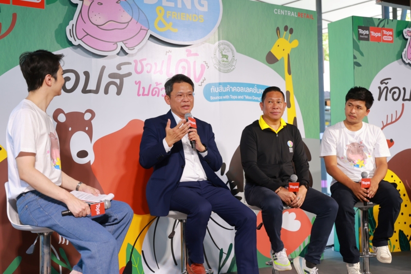 ท็อปส์จึงร่วมกับ ‘สวนสัตว์เปิดเขาเขียว’ ต่อยอดปรากฏการณ์ซอฟต์พาวเวอร์ ‘หมูเด้งฟีเวอร์’ เปิดตัวแคมเปญ ‘TOPS x Moo Deng & Friends’ เพื่อร่วมฉลองโอกาสหมูเด้งครบรอบ 4 เดือน พร้อมชูแนวคิด ‘คืนกำไรสังคม’ เพื่อให้ลูกค้าได้มีส่วนร่วมในการสนับสนุนสังคม ผ่านการชอปสินค้าในคอลเลกชันพิเศษ โดยรายได้ส่วนหนึ่งสมทบทุนช่วยเหลือผู้ประสบอุทกภัย และสนับสนุนการอนุรักษ์สัตว์ป่าของไทย