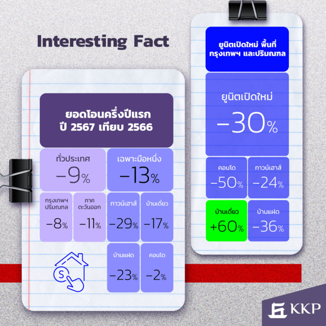 สายงานสินเชื่อธุรกิจ ธนาคารเกียรตินาคินภัทร วิเคราะห์ว่าแนวโน้มความต้องการที่อยู่อาศัยในปี 2567 ยังคงเผชิญกับแรงกดดันจากปัจจัยทางเศรษฐกิจสำคัญหลายประการ โดยเฉพาะ