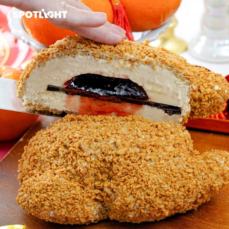 ไอศกรีมไก่ไหว้เจ้าสุดบรรเจิดนี้ มีลักษณะเป็นไก่ทอดตัวอวบอ้วน ที่ด้านนอกคลุกเคล้าด้วยคาราเมลคอนเฟลคกรุบกรอบ ส่วนด้านในเป็นเนื้อไอศกรีมวานิลลาหอมหวาน สอดไส้ด้วยโครงกระดูกไก่ที่ทำด้วยช็อกโกแลต พร้อมไส้ซอสสตรอเบอรี่ฉ่ำเยิ้ม ให้รสสัมผัสหลากหลายในทุกคำที่กัดลงไป