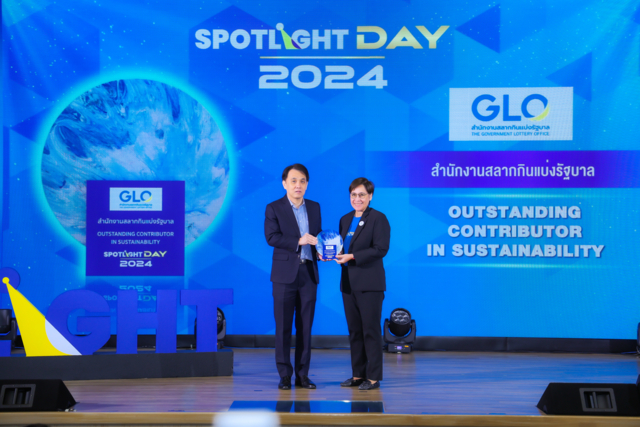 คุณสุพิชญา นิทัศน์วรกุล หัวหน้าสำนักสื่อสารองค์กร สำนักงานสลากกินแบ่งรัฐบาล ได้เข้ารับมอบประกาศเกียรติคุณ “SPOTLIGHT Outstanding Contributor in Sustainability” ให้กับองค์กรต่าง ๆ ที่ได้มีส่วนร่วมในการเปลี่ยนผ่านธุรกิจสู่ความยั่งยืน ทั้งด้านความคิดสร้างสรรค์ การพัฒนาและเปลี่ยนแปลงวิธีการดำเนินธุรกิจ เพื่อรักษาสมดุลระหว่างการเติบโตทางธุรกิจ ควบคู่ไปกับการดูแลเศรษฐกิจของประเทศ การดูแลสังคมและสิ่งแวดล้อม จากคุณศิริ บุญพิทักษ์เกศ กรรมการผู้จัดการใหญ่ บริษัท อมรินทร์ เทเลวิชั่น จำกัด
