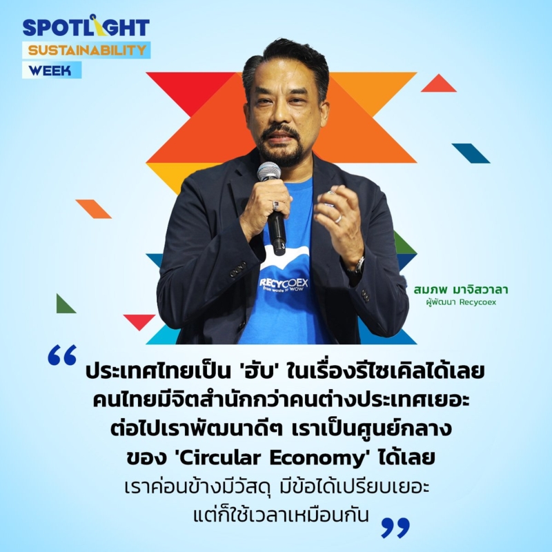“ประเทศไทยเป็น 'ฮับ' ในเรื่องรีซเคิลได้เลย คนไทยมีจิตสำนักกว่าคนต่างประเทศเยอะ ต่อไปเราพัฒนาดีๆ เราเป็นศูนย์กลางของ 'Circular Economy' ได้เลย เราค่อนข้างมีวัสดุ มีข้อได้เปรียบเยอะ แต่ก็ใช้เวลาเหมือนกัน” สมภพ เผย