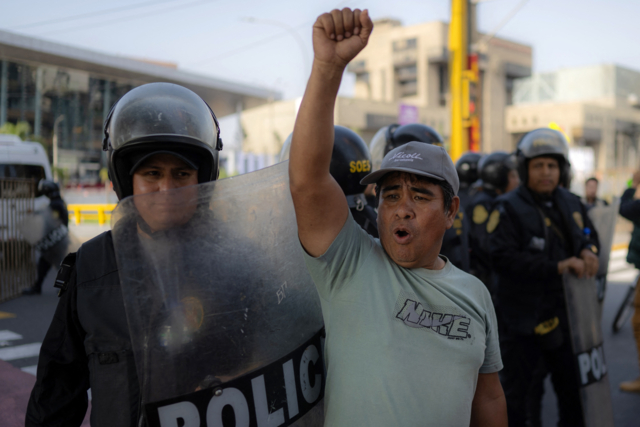 การประท้วงปะทุขึ้นทั่วประเทศ โดยเฉพาะที่กรุงลิมา มีการปิดถนนและเดินขบวนไปใกล้กับที่จัดงานประชุมสุดยอด APEC ขณะที่เมื่อวันอังคารที่ผ่านมา คนงานในภาคส่วนขนส่งมวลชนและสหภาพแรงงาน ออกมาเรียกร้องผละงานประท้วงเป็นเวลา 72 ชั่วโมง ส่วนประเด็นหลักๆที่ผู้ประท้วงต้องการเรียกร้องก็คือ ปัญหาการปล้นทรัพยากรชาติและรัฐบาลของประธานาธิบดีดินา โบลัวร์เต
