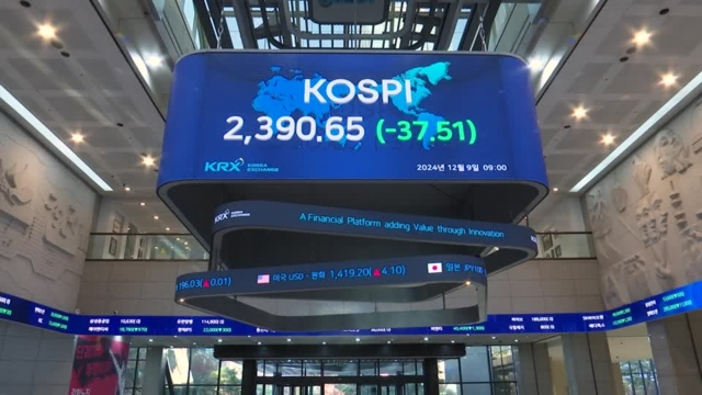 ตลาดหุ้นเกาหลีใต้ร่วงลงอย่างหนักในเช้าวันจันทร์ที่ 9 ธันวาคม หลังจากญัตติถอดถอนประธานาธิบดียุน ซอกยอล ล้มเหลวในช่วงสุดสัปดาห์ที่ผ่านมา ทำให้สถานการณ์ทางการเมืองรุนแรงยิ่งขึ้น โดยดัชนี KOSPI ปรับลดลง 41.11 จุด หรือ 1.73% อยู่ที่ระดับ 2,387.05 เมื่อเวลา 09.43 น. ตามเวลาในเกาหลีใต้ หลังจากที่ก่อนหน้านั้นเคยร่วงลงไปถึง 2.23%